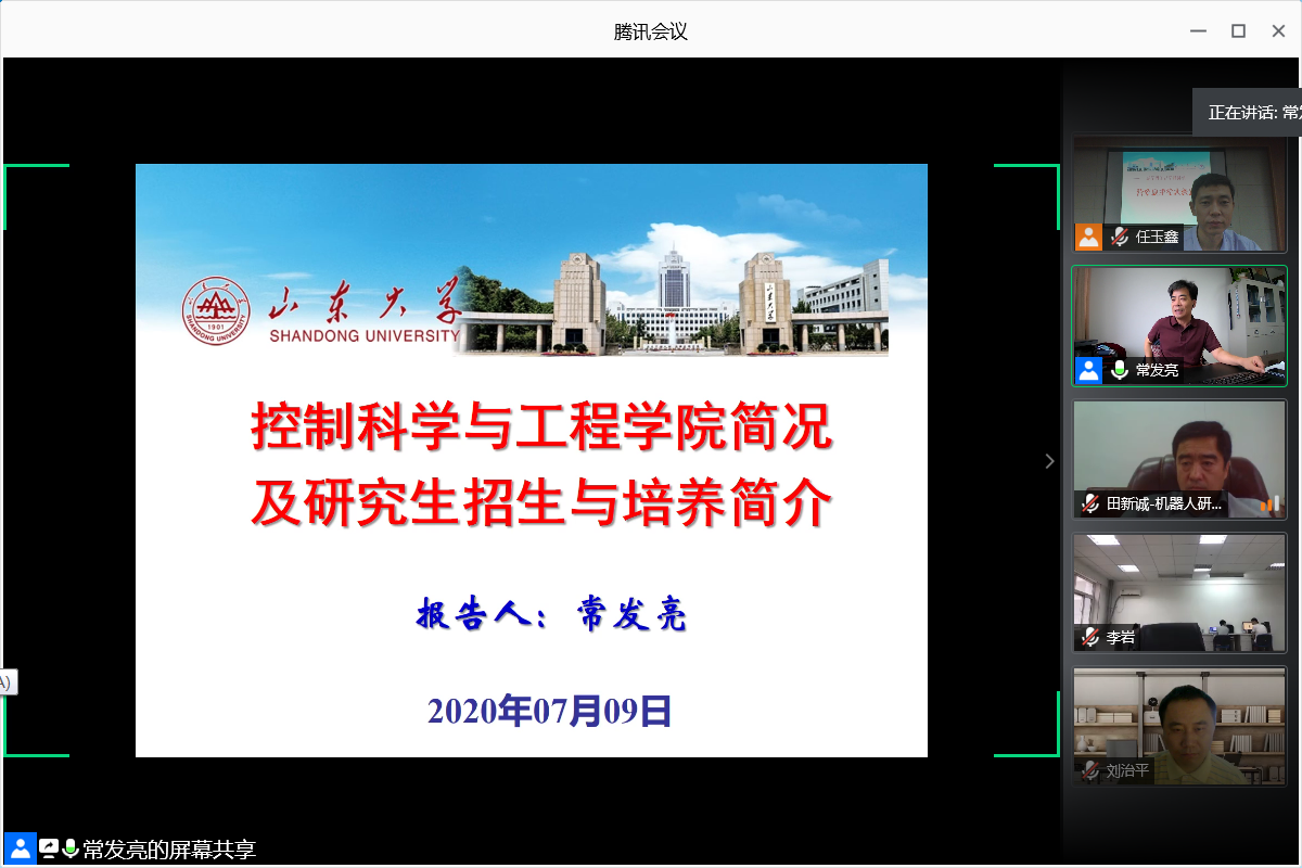 发展历史、学科队伍和平台建设、科学研究、研究生培养,以及2021年硕士研究生招生政策。随后,自动化所、新能源与高效节能国家地方联合工程实验中心暨电力电子节能技术及装备教育部工程研究中心、智能装备与电子新技术研究所、生物医学工程研究所、智能无人装备教育部工程研究中心暨机器人研究中心相关负责人简要介绍了本中心(所)的科学研究和研究生培养的相关情况。