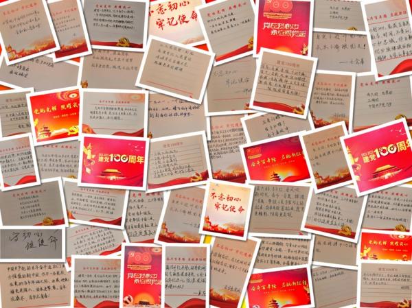 1921年到2021年,改变的是数字,是时间,不变的是青年学生党员和入党积极分子对党的初心和忠诚。党支部书记晏家梁在贺卡上郑重地写下,坚定不移听党话,至死不渝跟党走,对党忠诚,永远是身为共产党员始终如一的誓言。入党积极分子赵芮表示,生在红旗下,长在春风中,坚定拥护党的领导,积极向党组织靠拢,是身为入党积极分子最纯粹的决心。七月红旗飘飘,借五星之荣耀,庆建党之壮举,作为新时代青年的我们,继续传承红色基因,赓续精神血脉,保持青春活力,不断创新追求,用实际行动为我们党100周年献礼。由衷地祝福伟大的中国共产党更加强大、国家更加繁荣、人民更加幸福。
