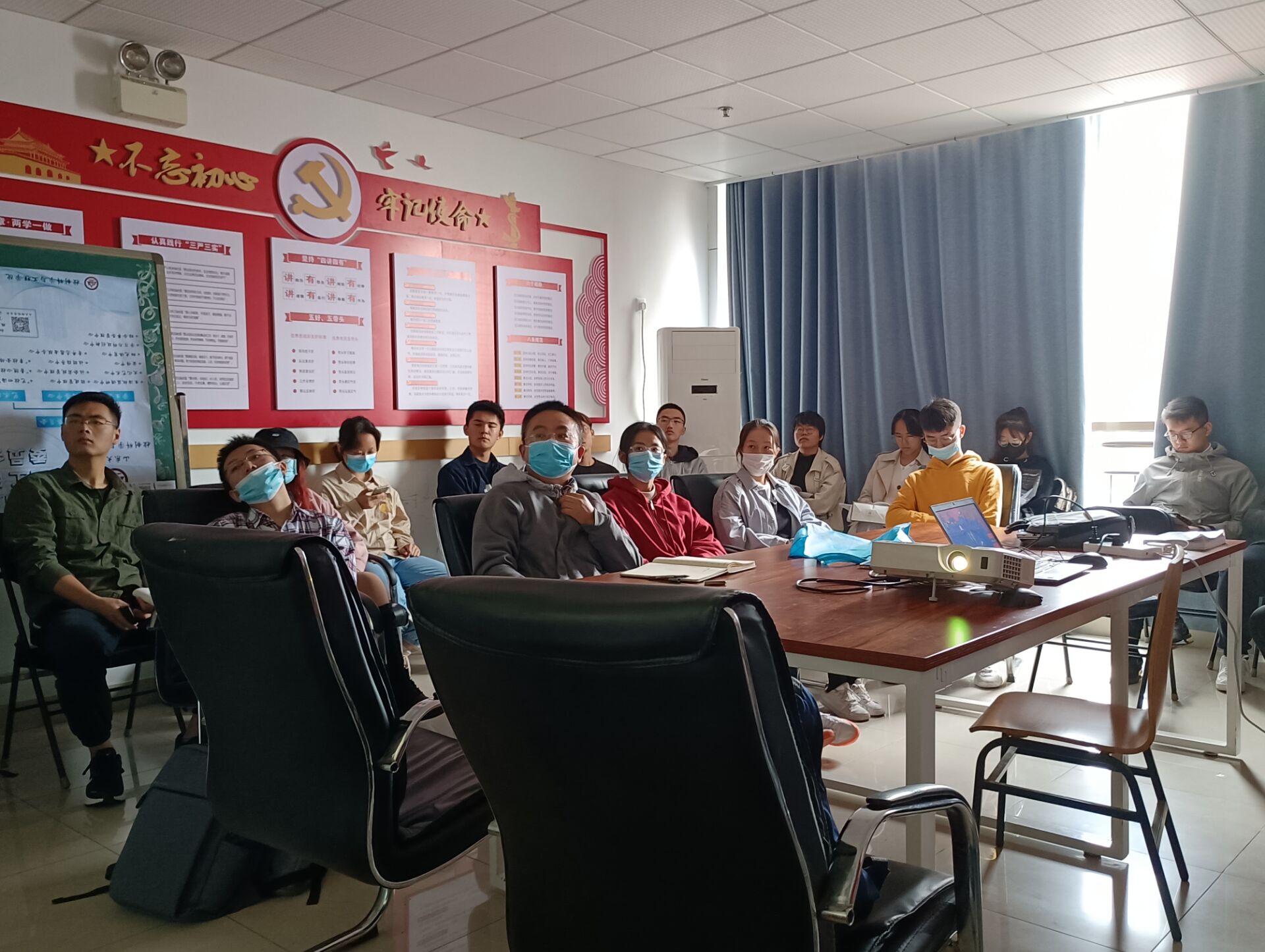 于兴隆山校区综合实验楼开展主题学习党课,组织本科第一、第二支部学生党员集体收看纪念辛亥革命110周年大会直播,兴隆山校区党支部书记、2021级辅导员李文振主持会议。