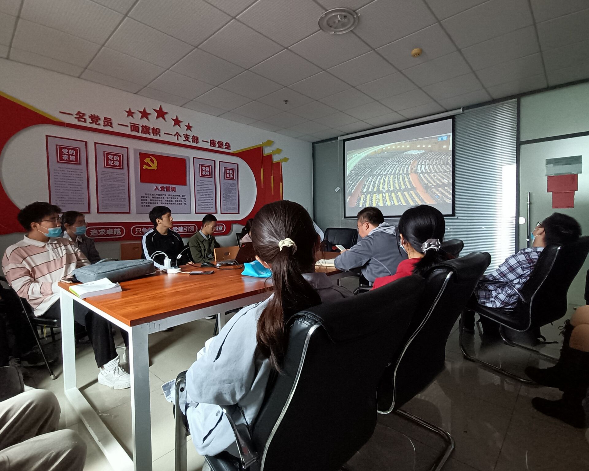 会议伊始,李文振老师向各位党员阐述了辛亥革命的伟大历史意义和重要现实意义,强调各位党员应认真学习红色历史,以史为鉴,知史励行。在观看直播过程中,现场气氛庄严肃穆,各位党员聚精会神地聆听习近平总书记的重要讲话。习近平总书记在发言中肯定了辛亥革命及以孙中山为代表的革命党人的革命精神与价值,进一步阐述了辛亥革命极大促进中华民族的思想解放、打开中国进步潮流的闸门的重要意义,强调中国共产党是历史的选择、人民的选择,中华儿女应坚定理想信念,发扬辛亥革命先驱的伟大精神,向着中华民族伟大复兴的目标继续奋勇前进。会议最后,李文振老师做总结发言,他强调,党员同志应进一步学史明志,增强历史使命感和工作责任感,立足本职,兢兢业业干好本职工作,不断提升个人政治觉悟,全心全意为群众办实事。