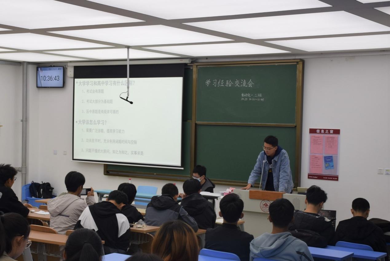 举办学习经验交流会。2020级优秀同学和2021级新生参加本次活动,交流大学生活中的学习心得。