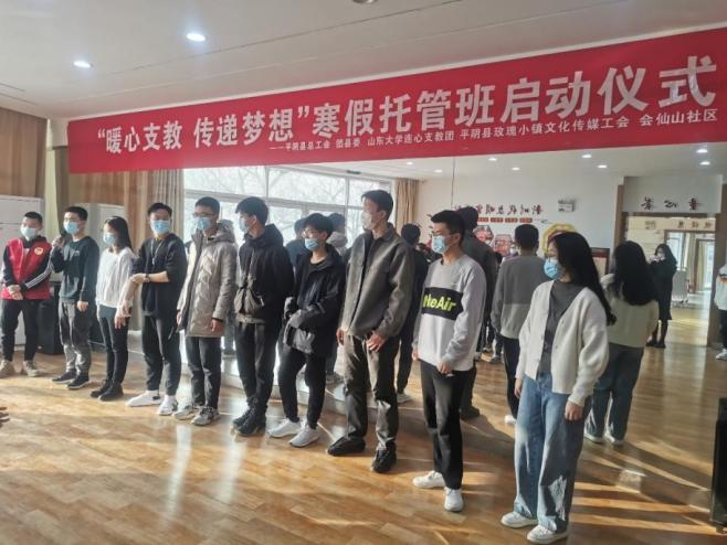 连心支教团平阴支教活动“暖心支教 传递梦想”寒假托管班启动仪式顺利举行。平阴县总工会付璐璐、团县委郑婷婷、榆山街道专职副书记陈锐、榆山街道团工委书记丁晓芳、玫瑰小镇文化传媒李青老师出席仪式。郑婷婷在对支教团寄语中表示,本次支教活动的意义在于为孩子放飞梦想,让大学生得到锻炼,表达了对支教活动寄予的深切希望,并为同学们送上了真挚的祝福。