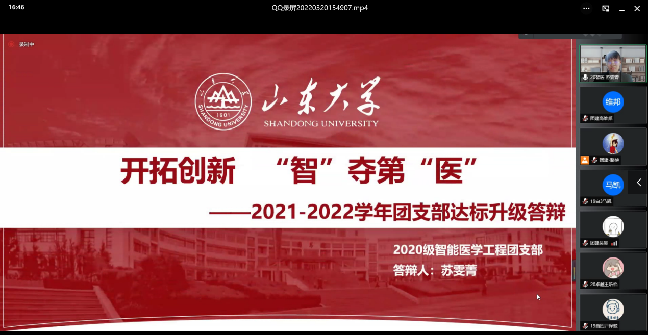控制科学与工程团支部达标升级复评答辩会顺利举办。出于疫情防控工作的要求,本次答辩采用线上答辩的方式进行。辅导员刘慧慧、田庚、郭亦玲、张元赫和各班团支部代表担任评委。