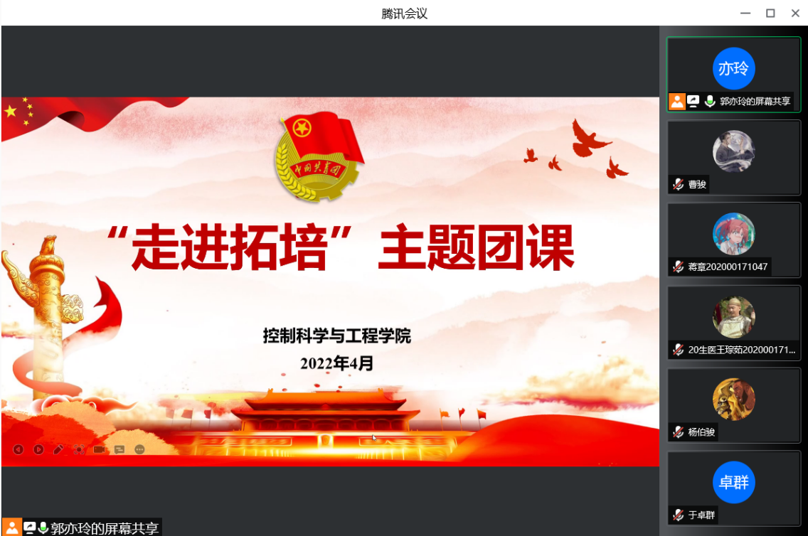 线上召开“走进拓培”主题团课,2020级辅导员郭亦玲担任主讲人,300余位团员参加团课。