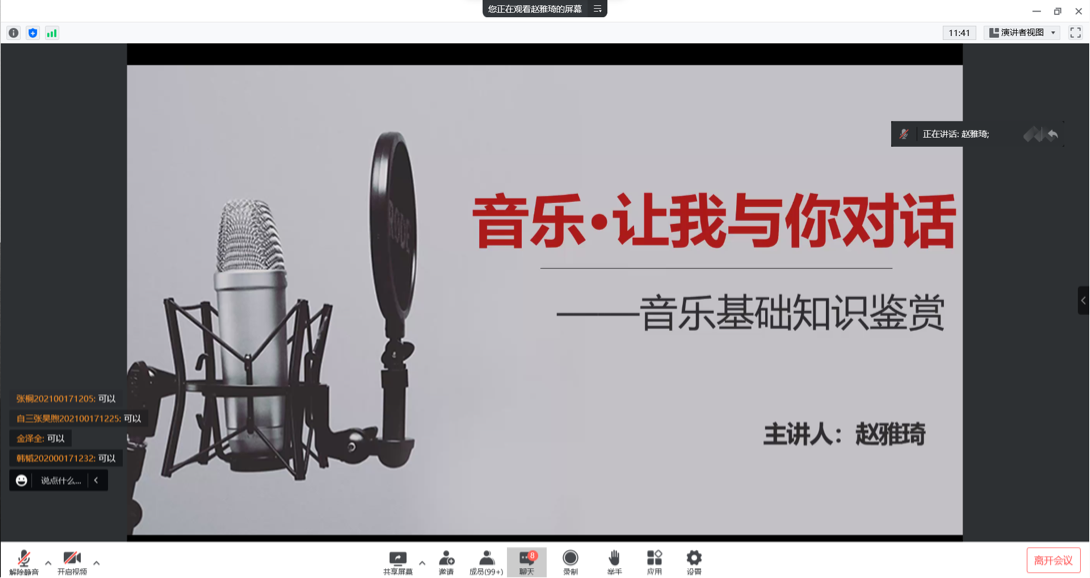 举办美育活动第七期—“控制美谈之音你而来”主题讲座,艺术学院研究生赵雅琦担任主讲人,近300名同学参与此次线上活动。