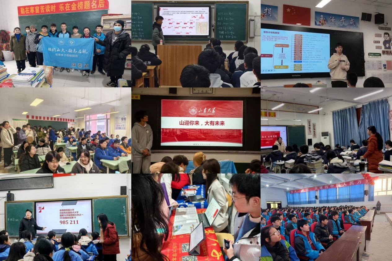 精心筹备,拓宽宣传边界。“相约山大·励志启航”2025年寒假优秀学子母校回访活动作为本科招生宣传的重要方式,得到了学院的高度重视与大力支持。学院团委结合学校工作要求,精心策划与周密部署,为回访团队提供了全方位的支持与指导。活动前,学院团委定制了一系列针对中学生的宣传资料与特色纪念品,并精心设计了回访母校专用的PPT和视频资料,旨在以更加生动直观的方式展示山大风采。同时,学院还建立了线上咨询群,实时解答回访团队在筹备过程中遇到的各种问题,确保活动顺利进行。寒假期间,212余名优秀学子积极响应,组成了29支回访团队,足迹遍布全国11个省市,回访中学达到125所,其中不乏省重点中学与省示范中学,极大地拓宽了活动的覆盖范围与影响力。