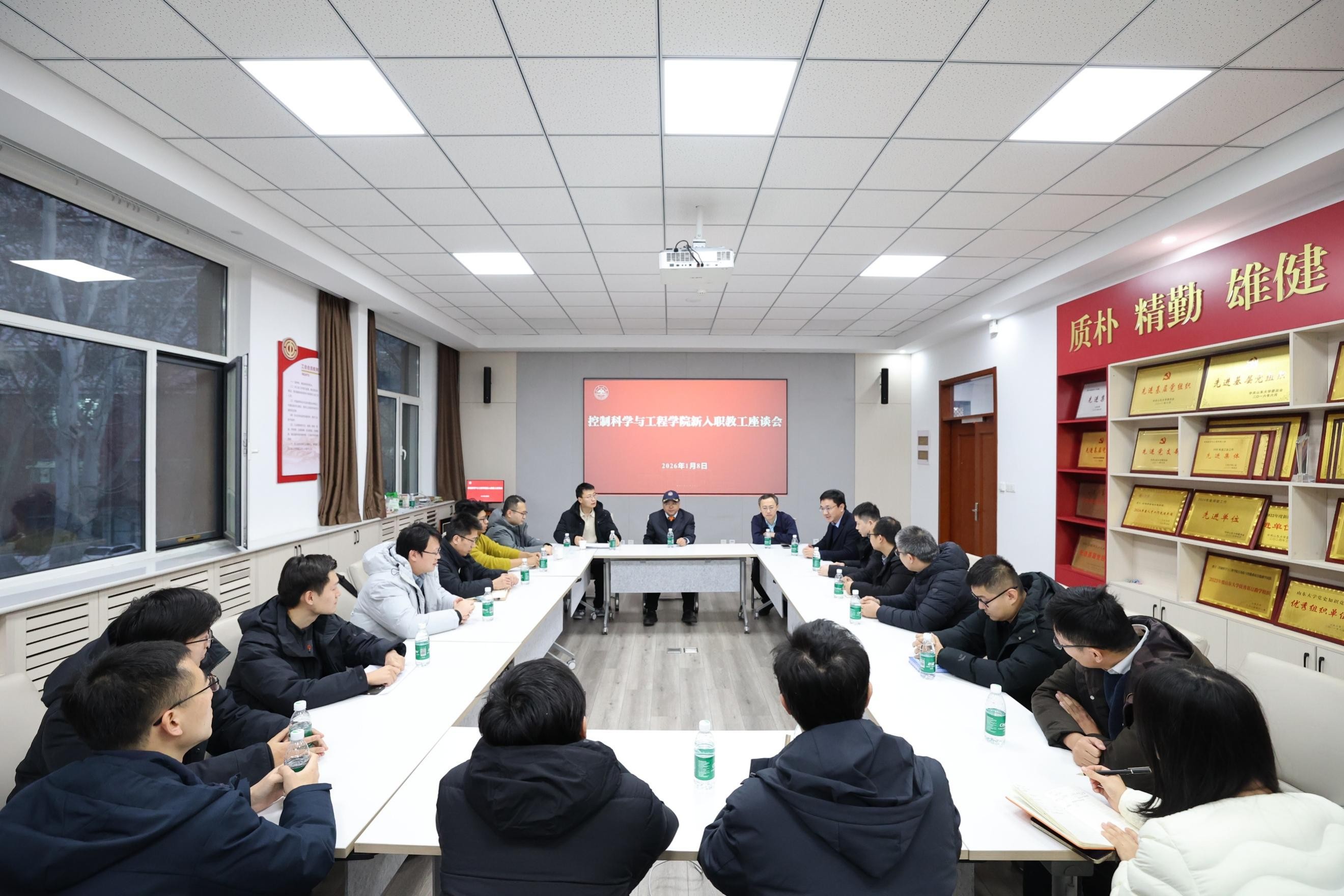 召开新入职教工座谈会,院长张承慧出席会议并与新进教师深入互动交流,张聪等17位新入职教师参会交流,副院长孙波主持会议。