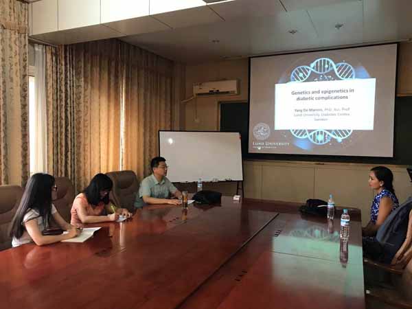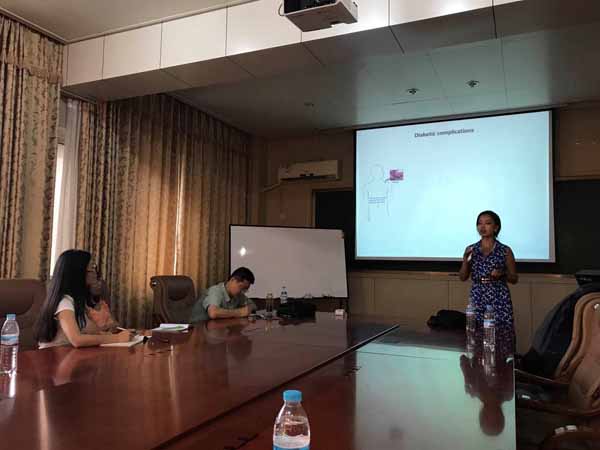 Yang De Marinis(张阳)博士在报告中指出了高血糖是一种有效的表观遗传改变的诱导因素,表观遗传调控与糖尿病并发症的发生具有密切的因果关系。目前,其研究团队正在运用尖端技术,包括全基因组染色质免疫沉淀测序(ChIP-seq)和基因组编辑工具CRISPR/Cas9等对糖尿病患者肾脏活检、动脉粥样硬化斑块巨噬细胞和单核细胞进行研究,在不同的人和动物细胞中可以用nuclerotide CRISPR/Cas9来编辑最高候选基因和单基因多态性(SNPs)以进行详细的功能学习。报告之后,Yang De Marinis博士还和与会师生针对报告中的一些问题展开了热烈的讨论,高瑞教授最后进行了总结。